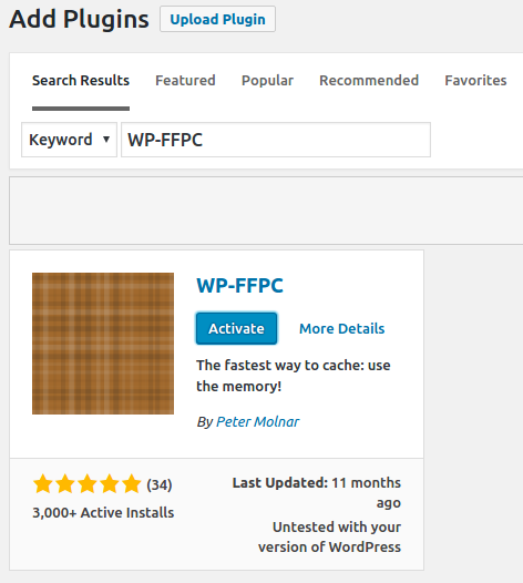 4. Now, login to the plugin area and download the WP-FFPC plugin and activate it.