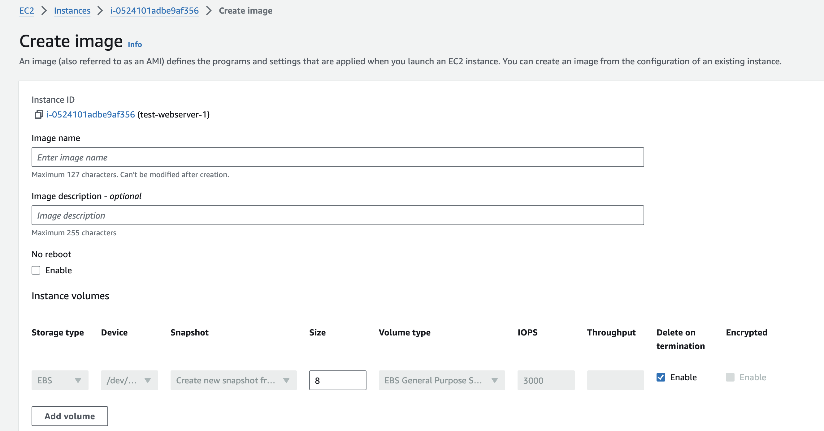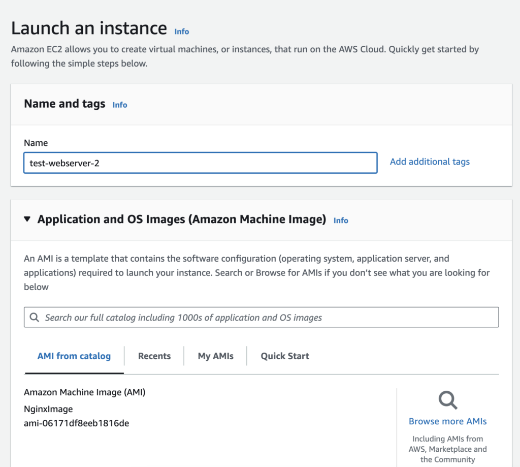 6. Once the AMI is in a ready state, I can now launch Instances from this image, say test-webserver-2