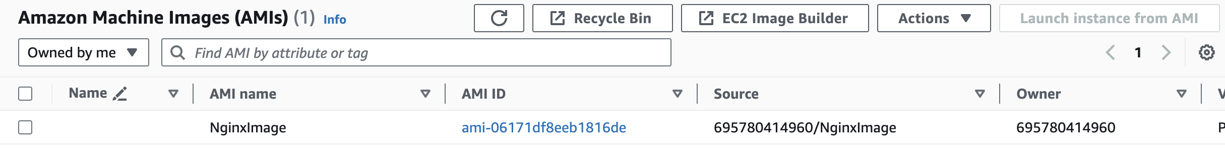 3. Now that the instance has been launched with the Nginx web server, I should be able to make an AMI out of it.