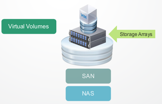 - Virtual Volumes - A new integration and management framework that virtualizes SAN/NAS arrays, enabling a more efficient operational model that is optimized for virtualized environments. Virtual volumes simplifies storage operations by automating manual tasks. It provides administrators with finer control of storage resources and data services at the VM level, simplifying the delivery of storage service levels to applications.