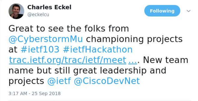 Charles Eckel, Chairman of the IETF Hackathon :