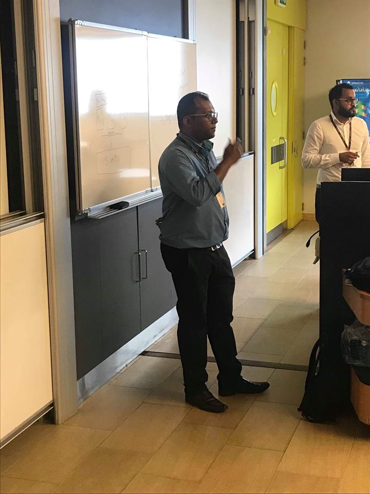 Nathan Sunil Mangar also presented on an introduction to the STM32 microcontroller. He also gave some hints to distinguish between fake and real microcontrollers on the market. Apart from the basic introduction, he went brushed out some examples on several projects and explain which one can is better. However, it also depends on the budget when choosing microcontrollers. He also showed how to use the tool of programming for the STM32 microcontroller. The documentation was also perused during the presentation. At the end of the presentation, there were several giveaways by Nathan Mangar including, fans, Microcontrollers, and a small light bulb made from STM32.