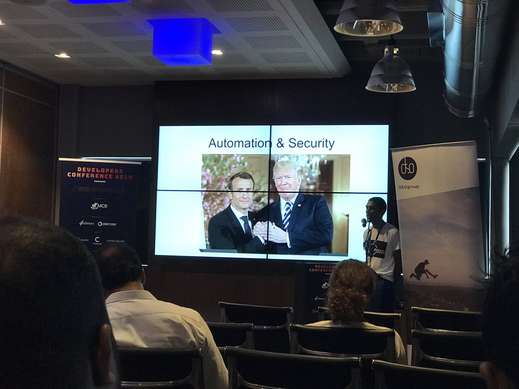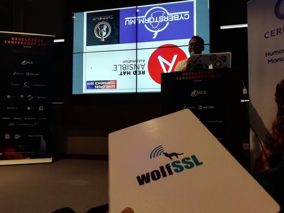 A few weeks back, I registered myself to present the Ansible automation tool at the Developers Conference 2019 at Voila Hotel, Bagatelle Mauritius. The event is an initiative of Mauritius Software Craftsmanship Community - MSCC sponsored by several companies such as Mauritius Commercial Bank, SdWorx, Eventstore, Ceridian, Castille, etc. There were other members of cyberstorm.mu who also registered for their presentations: they are Codarren Velvindron, technical lead at Orange Business Services who spoke about "becoming an automation artist", Loganaden Velvindron who spoke about "RedHat Enterprise Linux 8 and Derivatives have a new Firewall: NFTABLEs", and Nathan Sunil Mangar who spoke about "Introduction to the STM32". There was also a special event where Mukom Akong Tamon, head of capacity building for Africa region at Afrinic who spoke on "IPv6 deployment in Mauritius and Africa at large". I presented myself as a member of cyberstorm.mu and DevOps Engineer at Orange Business Services and spoke on Ansible for beginners with some basic and advanced demos.