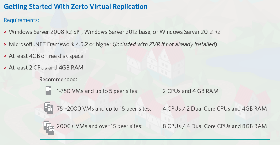 ZCP Basic is designed to get you up and running with ZVR and its key features and functions. There is a minimum requirements before using the ZVR service. First the ZVM should meet a requirement which is as follows. You will need one ZVM for every ZVM management console. For example each vCenter in use in the case of VMware, a ZVM is needed.