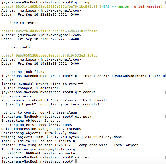 What if you already push some stuff on the repository and you want to roll it back. This can be done using the command git revert.