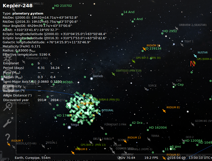 This is where exactly the Kepler planets are located. To be able to view exoplanets, you will need to activate it on the "Configuration Menu" then scroll to the "exoplanets" section and click on "load by default". Here is an idea how it looks like when i zoom into it.