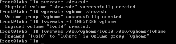 - vgcreate vghome /dev/sdc