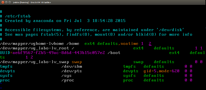 - /dev/mapper/vghome-lvhome /home ext4 defaults,noatime 1 2