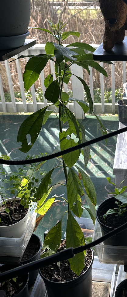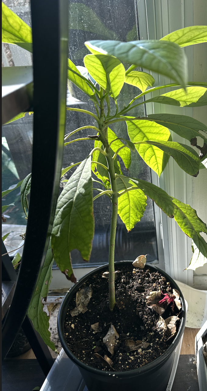 That one avocado plant that I grow from the seed is getting taller and has 2 branches now after it was pruned last summer