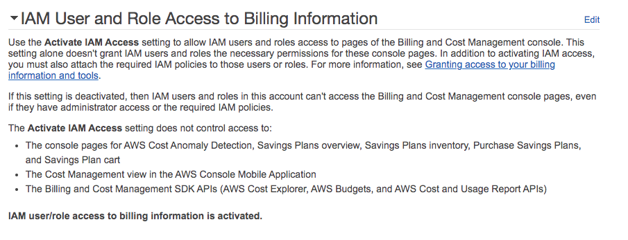 Account" and then scroll down go to "IAM User and Role Access to Billing Information"