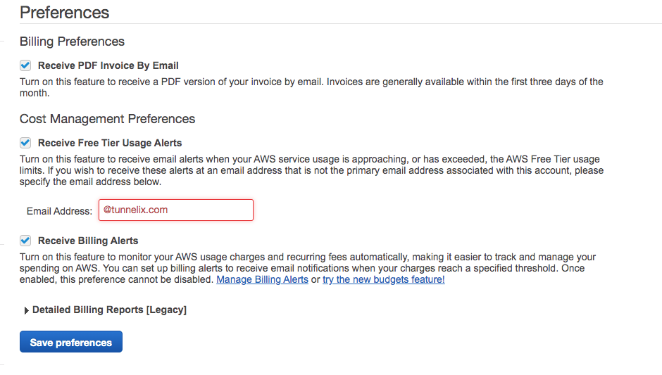 Billing Preferences" tick all the boxes for billing preferences, and add your email address to receive notifications for billing.