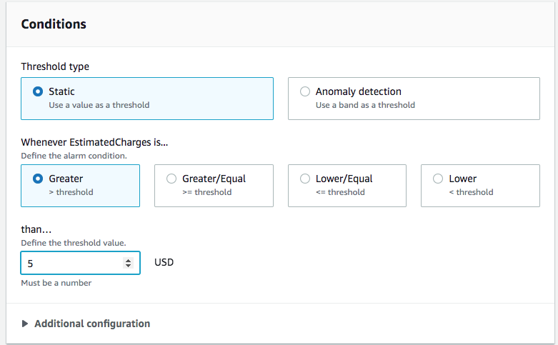 Then scroll down, set a condition to receive a notification. I'm setting up for a 5 USD threshold.
