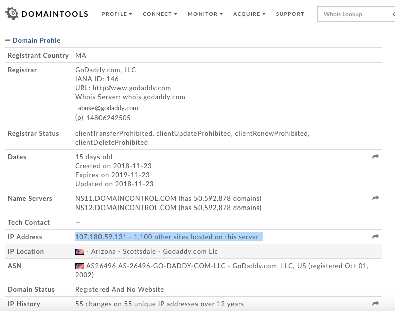 3. Worst, the domain 5ack.com has a history of 55 counts of changed IP addresses.