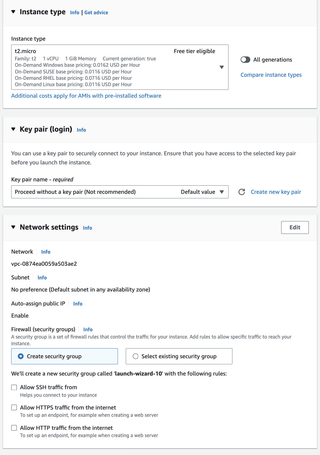 2. To register instances, first we need some instances ready. I created one instance with no key pair attached, new security groups by default without any rules in it