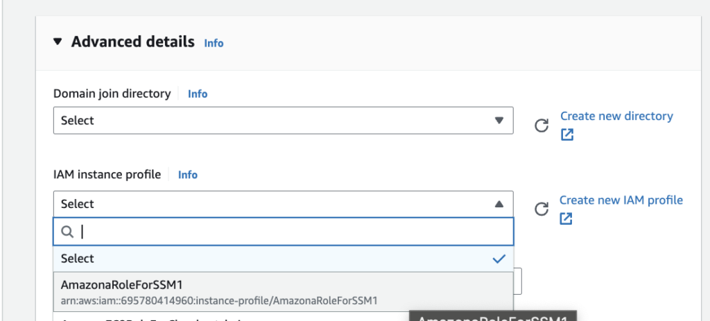 3. In "Advanced details", hit on "Create IAM Profile", this should bring you to the IAM -> Roles section:
