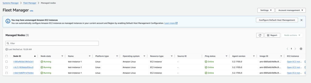 7. All three instances should now appear on the Fleet Manager under AWS Systems Manager.