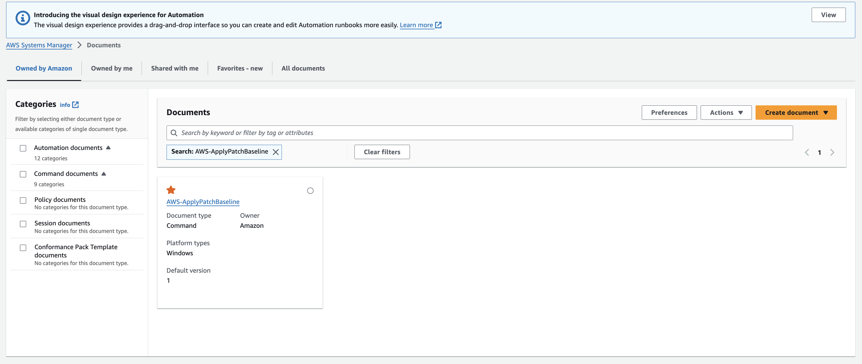I'm going to use a document owned by AWS called "AWS-ApplyPatchBaseline".