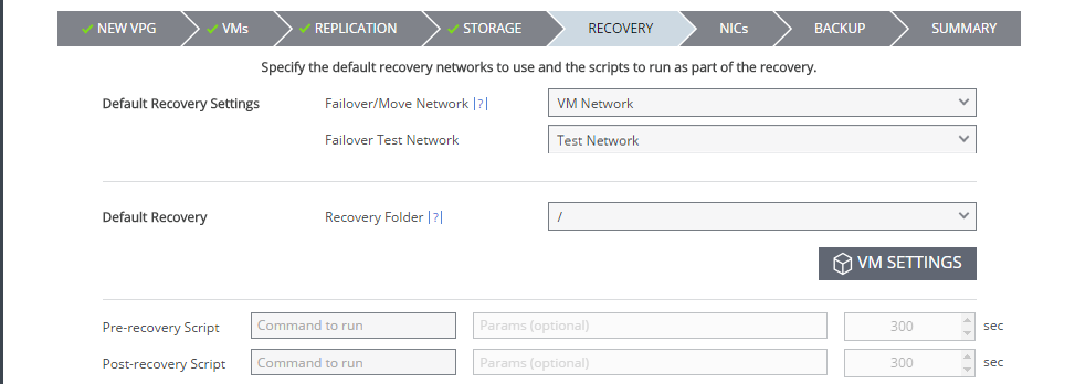 The recovery tab is for specifying defaults network and any post recovery scripts. You can specify the default recovery network and default recovery folder. For example: