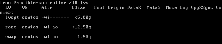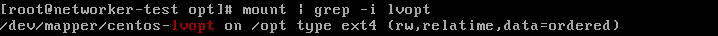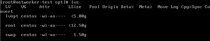 1. So, as you can see below I have an lv called lvopt which is from a vg called centos.