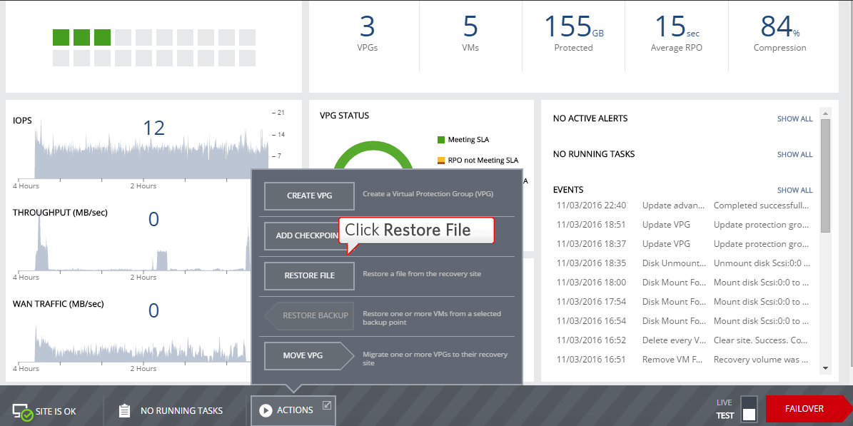 Restoring from backup allowed you to leverage scheduled and unscheduled backups that extend the protection offered by the journal. Cloning extends ZVR by  giving you multiple copies of your machines as they looked at a very specific point in time. With the file restore feature, you can extend the functionality of ZVR across the full spectrum of disaster recovery options, ranging from recovery of an entire virtualized datacenter to recovery of just one single file.
