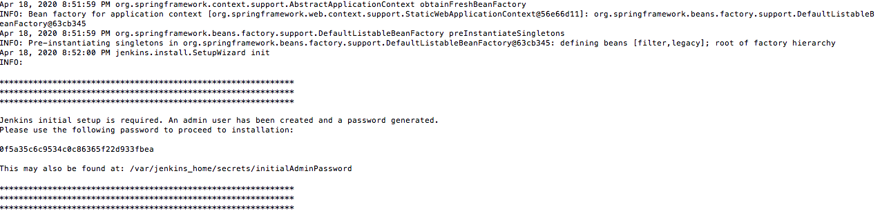 3. Go to the IP address:<8080> of your physical /virtual host where the docker has been installed, and the Jenkins should be accessible from there. Simply enter the password there.By this time, you should see the "Getting Started" page.