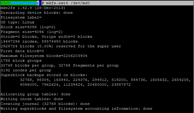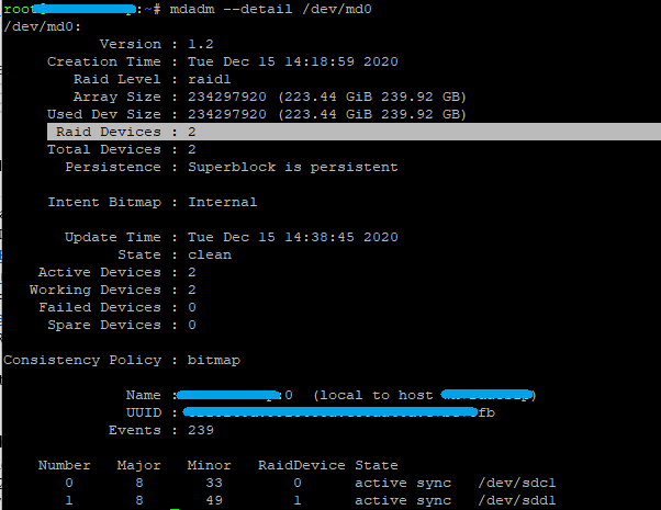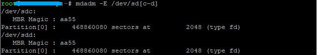 4. Since it has been detected as type "fd", we are good to start the mirroring using mdadm. The mirrored disk will be called /dev/md0: