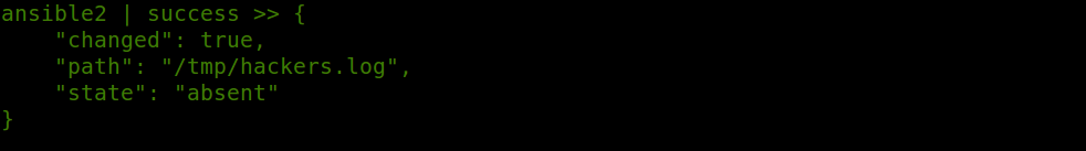 ansible ansible2 -m file -a 'path=/tmp/hackers.log state=absent'
