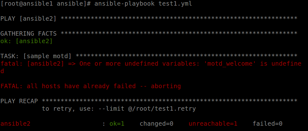 The MOTD is now created on the ansible2 machine :)
