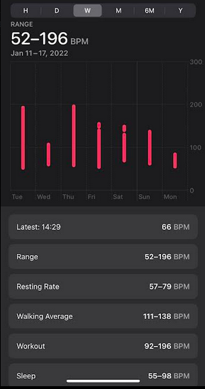 The data provided with the Health app from Apple is pretty cool to understand how the heart rate is changing over days, weeks, and months.