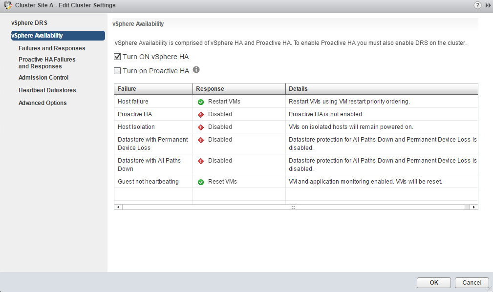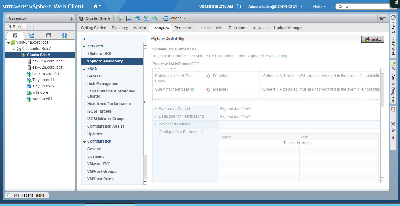2. Choose 'vSphere Availability' on the left -> then click on 'Edit'.