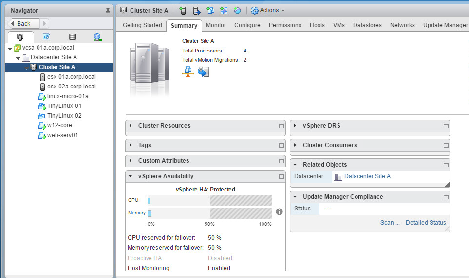 VMware vSphere HA is one of the core feature in a cluster. So let's bring some more precision about it. High Availability - HA enables a cluster of ESXi hosts to work together so that they can provide high levels of High Availability for virtual machines rather than just an ESXi host by itself. In brief, the High Availability feature is provided by pooling virtual machines and the ESXi hosts in the cluster for protection. Some examples could be host failures, host isolations and application crashes. The requirements for HA is a minimum of two hosts, vCenter Server and Shared Storage.
