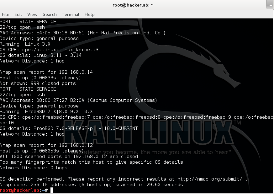 Find the operating systems being used in the same network - nmap -O 192.168.1.0/24